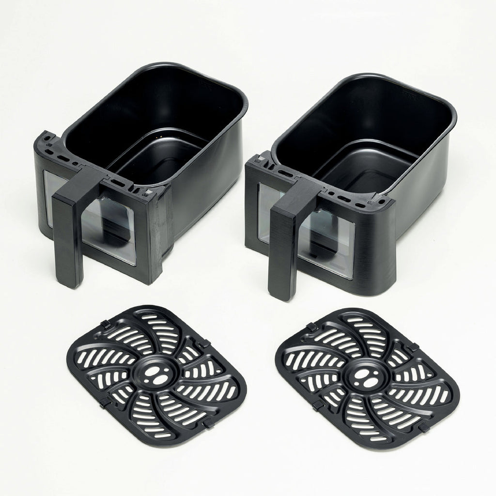 The Ariete Dual Air Fryer features 9L total capacity, two independent cooking zones, and a premium Black & Pink Gold finish.