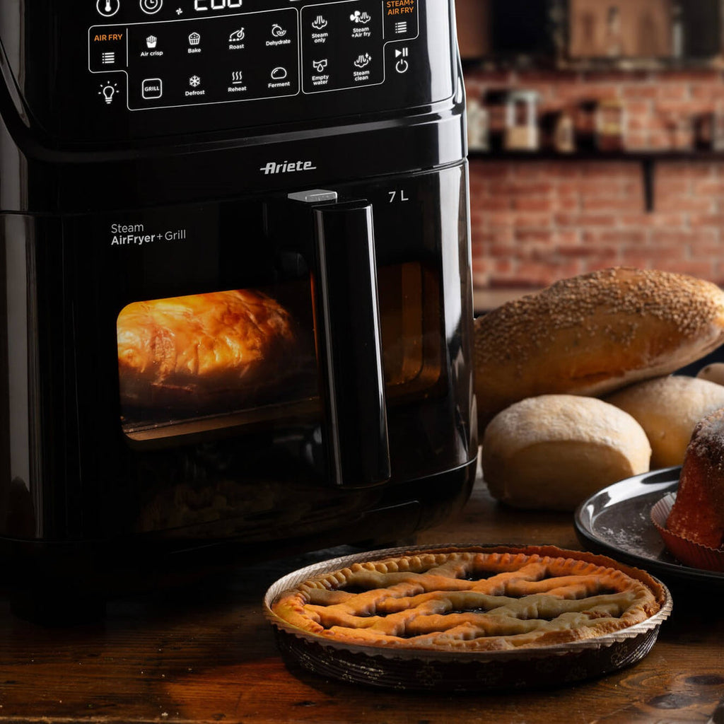 The Ariete Steam Air Fryer + Grill combines hot air frying, steam cooking, and grill functionality in one powerful 1700W multi-cooker.