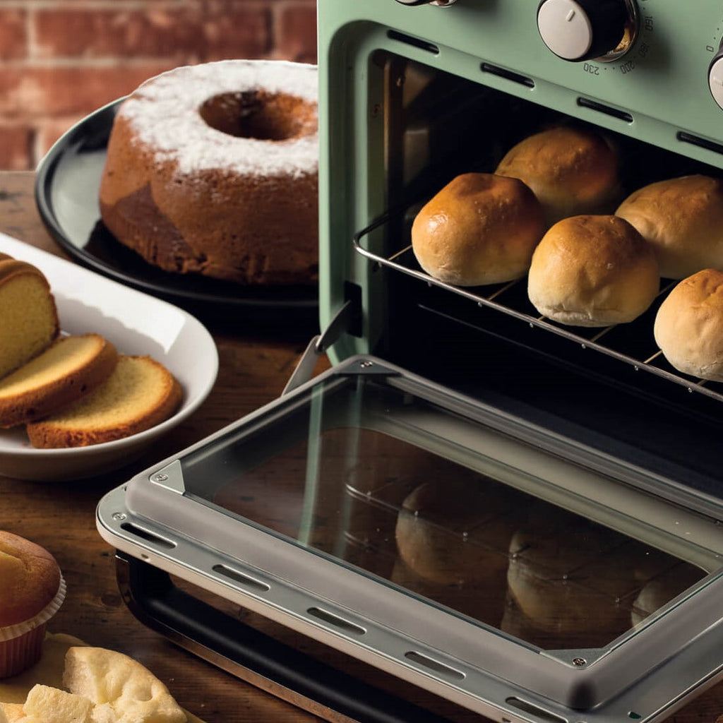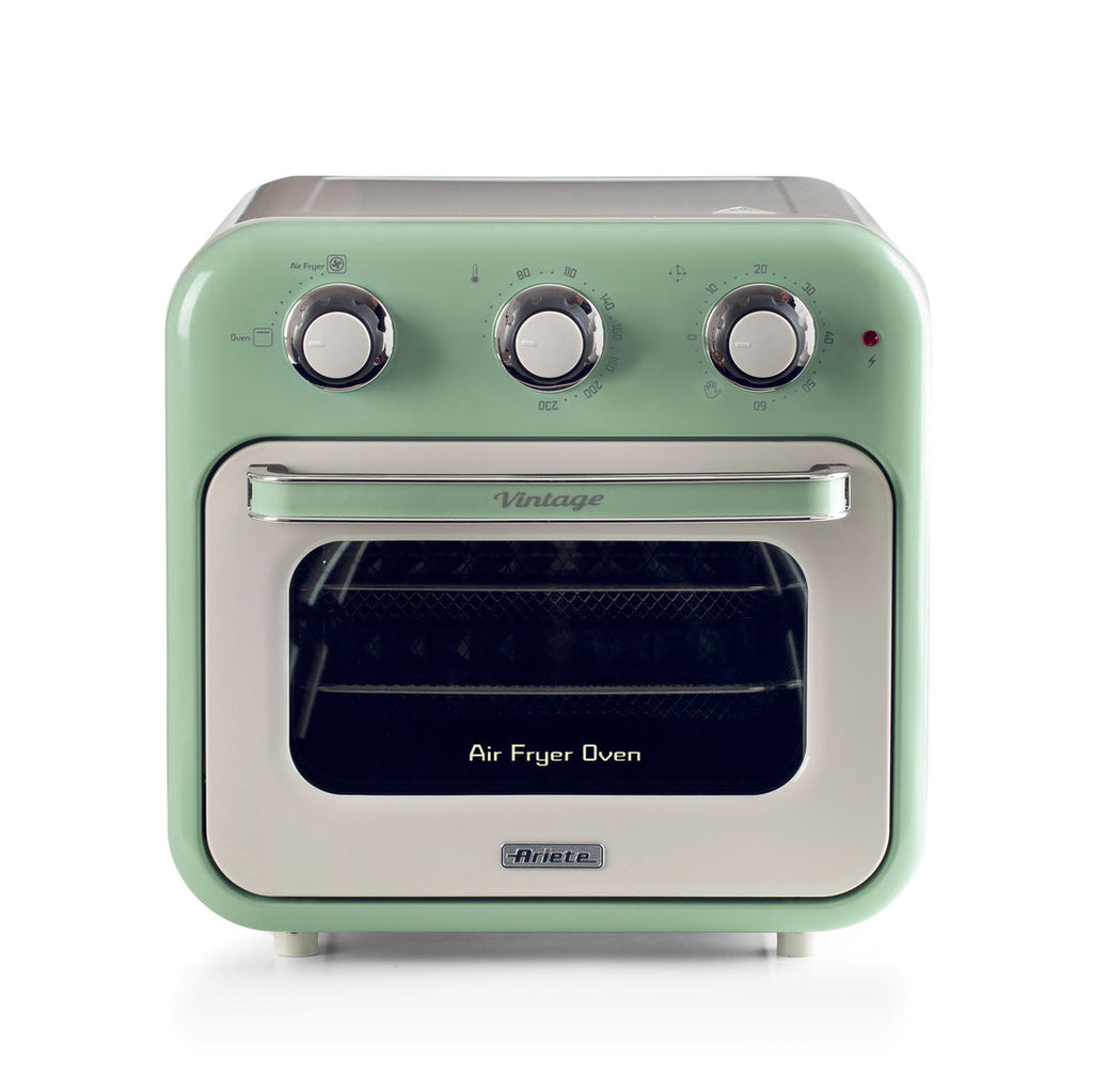 The Ariete Vintage Air Fryer Oven combines elegant retro styling with versatile cooking performance. With a 16L capacity and 1400W power, it air-fries, bakes, grills, roasts, and includes a rotisserie function for whole chicken and meat. A stylish multi-cooker that delivers fast, healthy results with minimal oil.