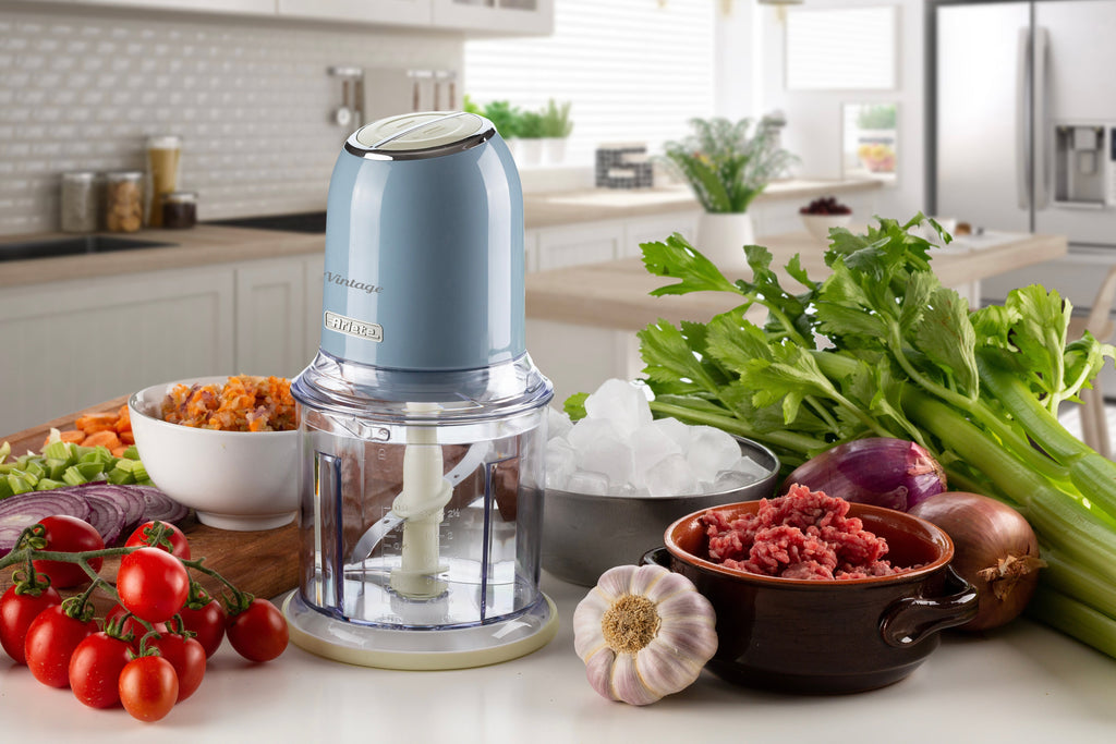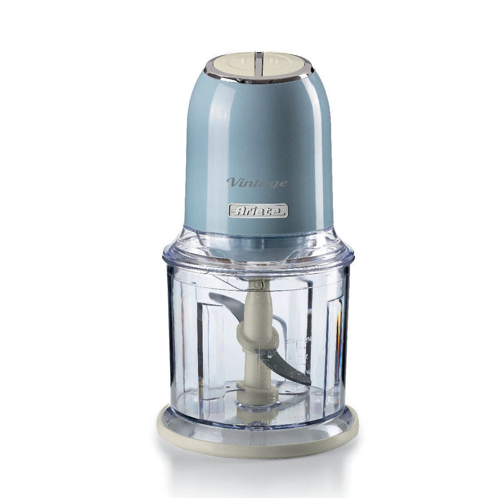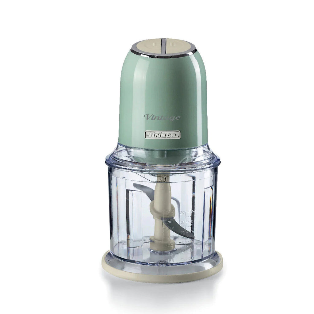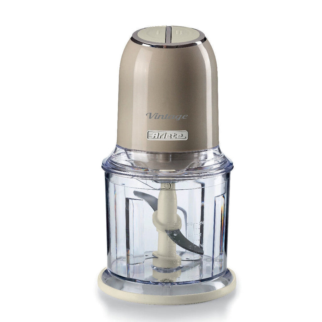 The Ariete Vintage Food Chopper delivers powerful performance with a compact retro design. Equipped with a 400W motor and four stainless steel blades, it quickly chops vegetables, herbs, nuts, and more. Its beige vintage finish makes it a stylish addition to any kitchen.