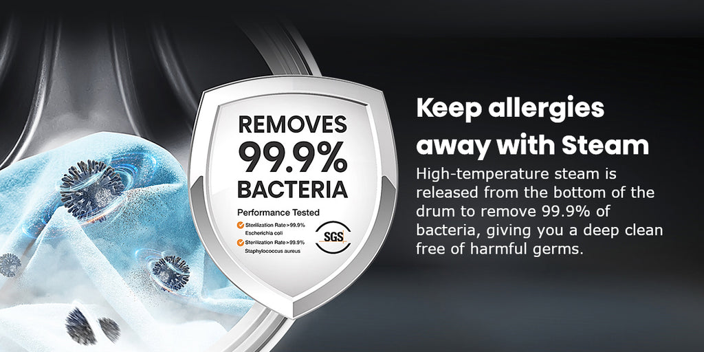 19 wash programs including steam for allergen removal.