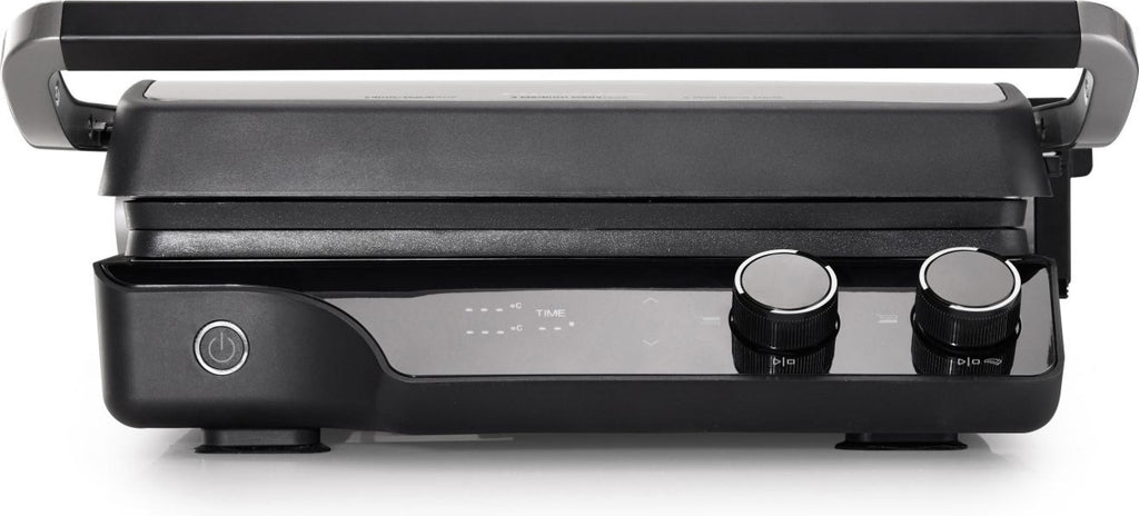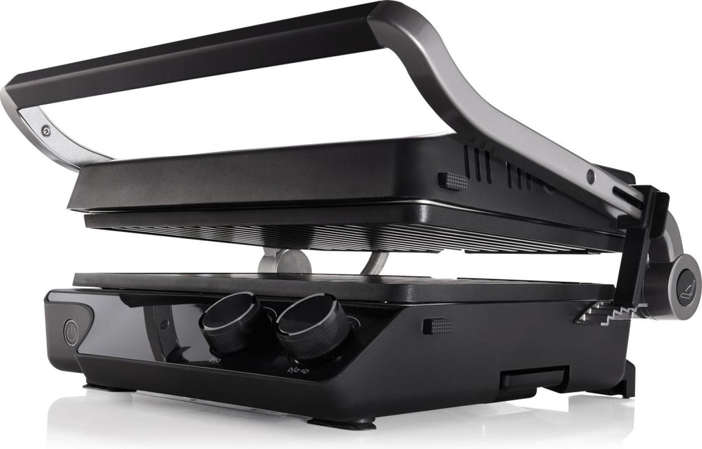 Featuring a sophisticated Anthracite Gray housing, this grill is as stylish as it is functional. The floating hinge system automatically adjusts to the thickness of your food, ensuring even pressure on everything from delicate vegetables to thick-cut steaks. For added versatility, the unit opens up for varied cooking styles, while the integrated grease drainage system and drip tray ensure your countertop stays clean and your food stays lean.