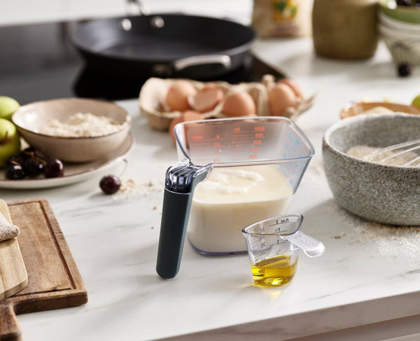 The Joseph Joseph Nest™ Measure (Model 40109) is a cleverly designed 2-piece measuring jug set that prioritizes both accuracy and storage efficiency. Featuring a 1-Liter (4 cup) jug and a 500ml (2 cup) jug, this set nests perfectly together to minimize the footprint in your kitchen cabinets. The high-contrast, easy-to-read markings allow you to measure liquids in milliliters (ml), liters, fluid ounces (fl.oz), and cups with total precision.