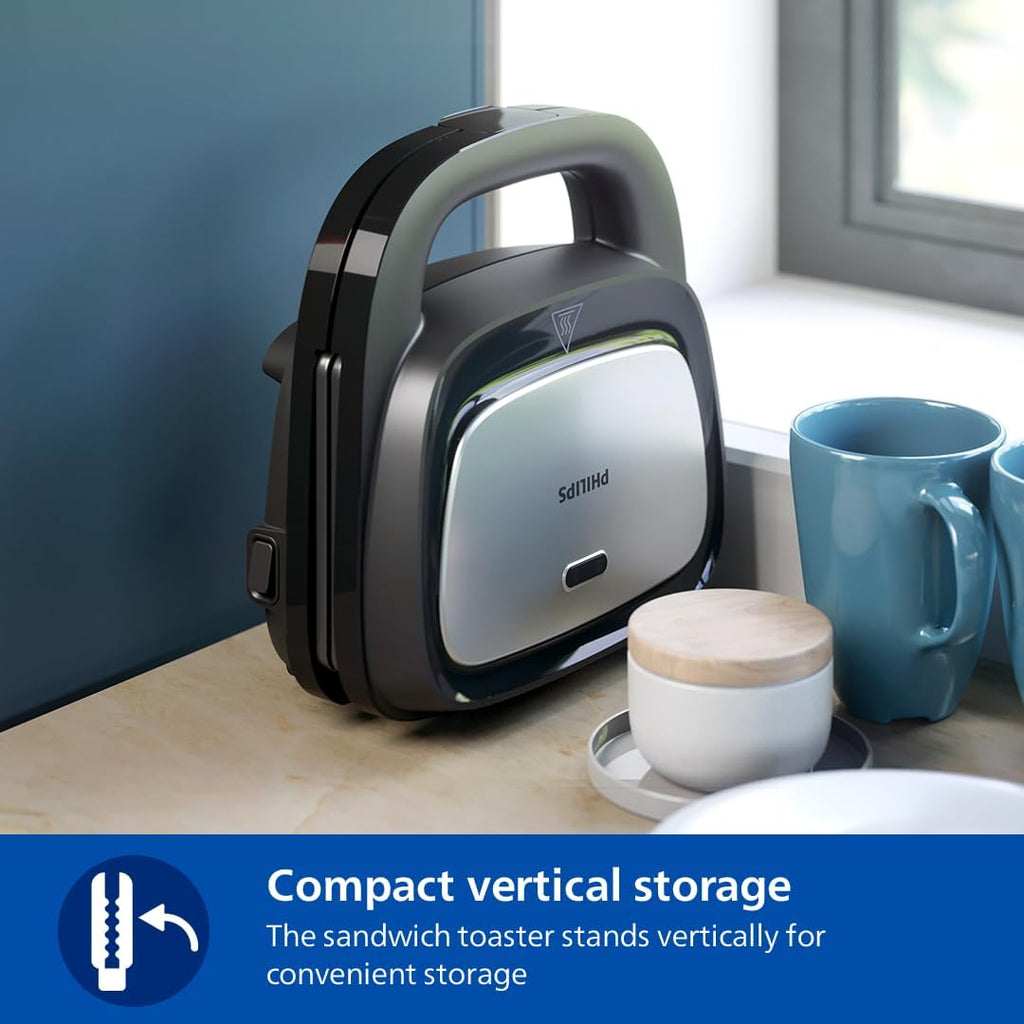 The Philips HD2350/80 5000 Series Sandwich Maker offers versatile cooking in one compact appliance. With 750W power and 3 interchangeable plates (sandwich, waffle, grill), it delivers crispy results every time.
