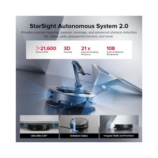 Equipped with intelligent navigation and advanced mapping technology, the Saros Z70 cleans systematically and efficiently across hard floors and carpets. Its strong suction power removes dust, debris, and pet hair, while the integrated vacuum and mop system ensures a deeper, more complete clean. Smart app control allows users to schedule cleaning sessions, manage rooms, and monitor performance in real time.